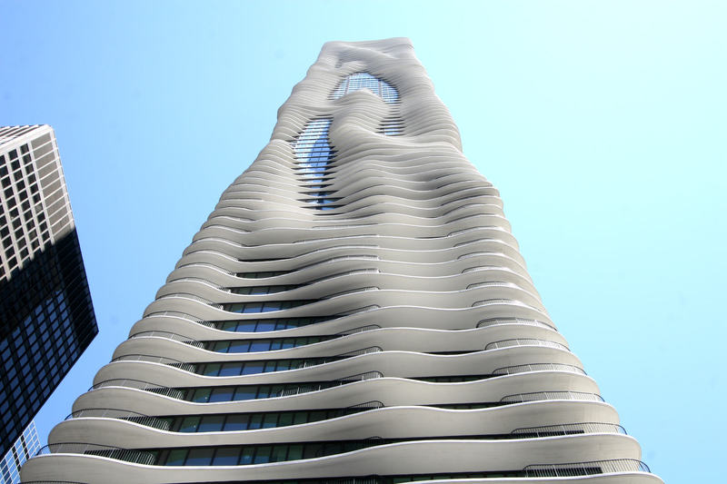 Ist es die Oberfläche eines Sees oder ist es ein Wolkenkratzer? Der erste Anblick irritiert, denn so ungewöhnlich ist die Fassade des Gebäudes. Der AQUA in Chicago ist ein neues Hochhaus in der Stadt, in der der Wolkenkratzer einst erfunden wurde. Seit 2009 ragt er inmitten der Chicago Skyline in die Höhe. Seine Fassade ist etwas völlig Neues. Wie fließendes Wasser umhüllt sie den Turm, wie Wellen bewegen sich die Balkone auf und ab. Entworfen hat den AQUA die Architektin Jeanne Gang. In Chicago wurde der AQUA zu einem neuen Liebling der Architekturkritiker und der Öffentlichkeit. Jeanne Gang gelang es, gleich mit ihrem ersten Wolkenkratzer ein außergewöhnliches Gebäude zu schaffen. Und sie beweist, dass das Formenrepertoire eines Wolkenkratzers noch lange nicht ausgeschöpft ist.